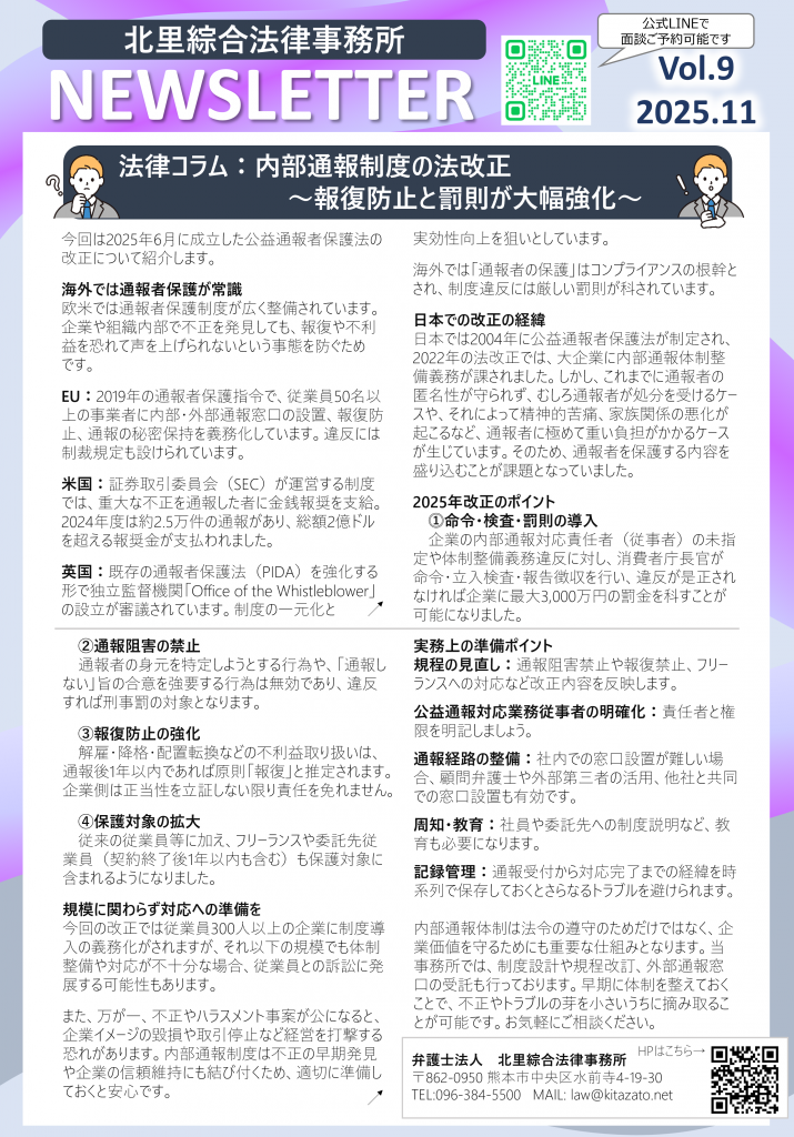 今回は2025年6月に成立した公益通報者保護法の改正について紹介します。